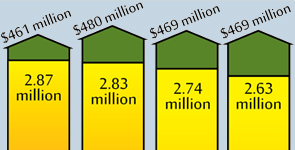 Court case filings dropped 4 percent last year, and over the last five years, filings have tumbled nearly 13 percent from more than 3 million to 2.6 million. Approximately two-thirds of this decline was due to a significant drop in the number of traffic citations issued throughout the state. This drop in citations has reduced funding to a number of state and local programs, and contributed to an 18 percent decline in funds deposited into the Judicial Computer System Account. However, total court collections over this same five-year period increased slightly. (See county case filing and disbursement tables)