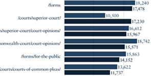 Research conducted this summer found a consistently high number of page views for the opinions and postings of Pennsylvania’s three appellate courts — Supreme, Superior and Commonwealth. Pages offering information about magisterial district judges, public records and forms also drew a significant number of page views.