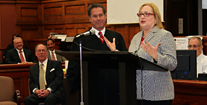 Supreme Court Justice Debra Todd presented Allegheny County Judge Kevin G. Sasinoski with a certificate of accreditation for the Fifth Judicial District’s DUI court.
